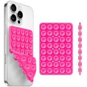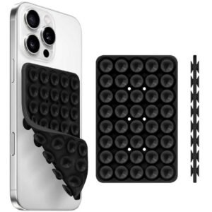 Meet the double-sided suction phone mount that turns any smooth, flat surface into your instant studio. Stick it to vanity mirrors, windows, tiles, fridges, glossy cabinets, and computer screens for steady, hands-free video, selfies, and calls—no heavy tripod required. The thick, soft silicone matrix features washable, reusable suction cups on both sides, so it grips your phone and the surface securely, then peels off clean with no sticky residue.